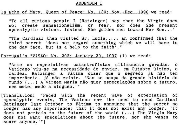 Former Cardinal Ratzinger and the Message of Fátima