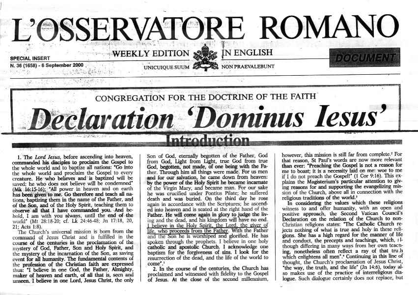 Please Note: Outside the fact that in part 1, the Nicene Creed has been conformed with the Creed as accepted by the Orthodox Church wherein the "...Holy Spirit, the Lord, the giver of life,...." proceeds only from "the Father" and not from "the Father and Son" as the Roman Church has promoted since the break between the Eastern and the Western Churches in mid 11th century, part 2 contains the most important statements as the Congregation for the Doctrine of the Faith backtracks on its claim that Salvation is only possible from within the Roman Catholic Church.